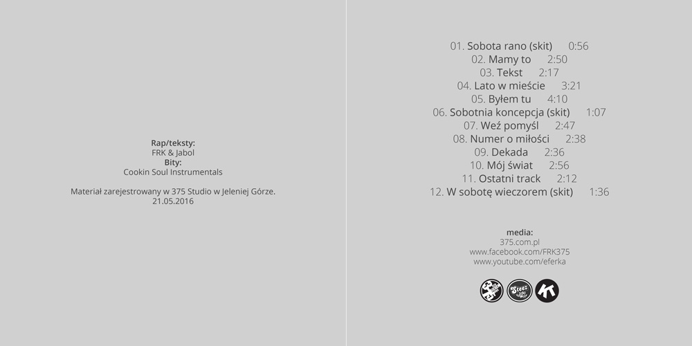Na drugi dzień Jabol wrócił do Wro, a ja wbiłem do studia dograć jeszcze parę brakujących rzeczy – a to jakiś refren, a to znowu kilka wersów na intro itp.. Na projekt wrzuciłem też kilka skitów – pomyślałem, że fajny klimat zrobi narracja w wykonaniu syntezatora mowy Ivona, przeplatana jakimiś wstawkami ze studia. Tytuł nasunął nam się sam, bo to przecież była nasza klasyczna weekendowa opcja, do tego na klasycznych bitach – tak powstał „Klasyk Na Sobotę”. Mimo, że z oczywistych względów nie ogarnialiśmy fizyka, ani nie zamierzaliśmy nigdzie tego promować, to jednak dla czystej zajawki przygotowałem całą poligrafię płyty i – po raz kolejny – nowy numer „MIEJSKIEGO Magazynu”, co poniekąd też powoli stawało się naszą tradycją.