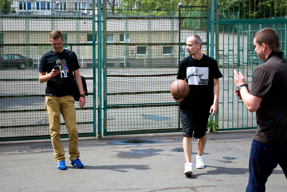 Z Kozanowa zajechaliśmy na „Zielone” – klasyczną miejscówkę na Szczepinie. Swego czasu, jeszcze jak mieszkałem we Wro, często wbijaliśmy tam na kosza. Bojko ma fajny klimat, otoczone jest metalowymi siatkami, a oprócz nas swoje klipy kręcili tam Jot (do numeru „Kolejny Raz”) i Massey z Nullem (do poniekąd trochę przypałowego „Basketball”). Oprócz tego, że zarejestrowaliśmy ujęcia do kawałka „Na Podwórku” to przede wszystkim popykaliśmy trochę w kosza. Pogoda dopisywała, także była dobra faza i ogólnie przyjemny czilałcik. Na Szczepinie dołączył też do nas ziomek Majka – Hubert, który pomógł nam kręcić sceny z udziałem całej naszej czwórki.